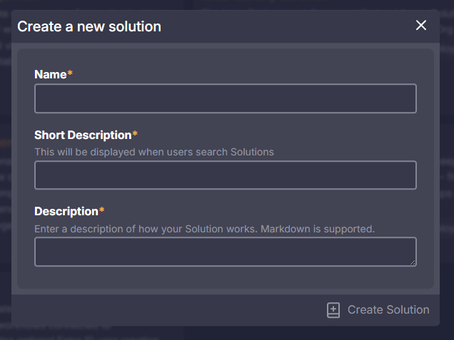 To create a new solution, click Create Solution under the Managed Solutions tab: