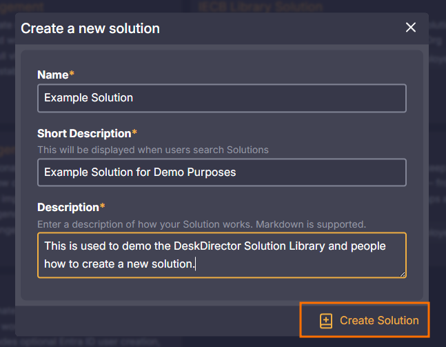 The Solution Library in DeskDirector allows you to create and deploy pre-built entities to your instance with only a few clicks.