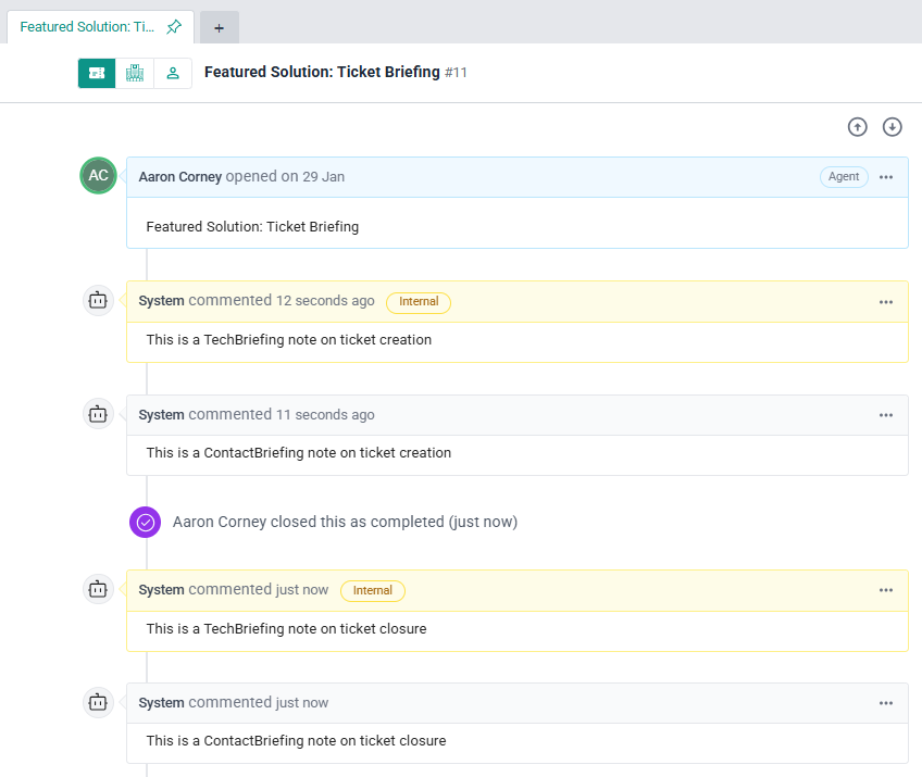 - Briefing notes are automatically added when the ticket is created